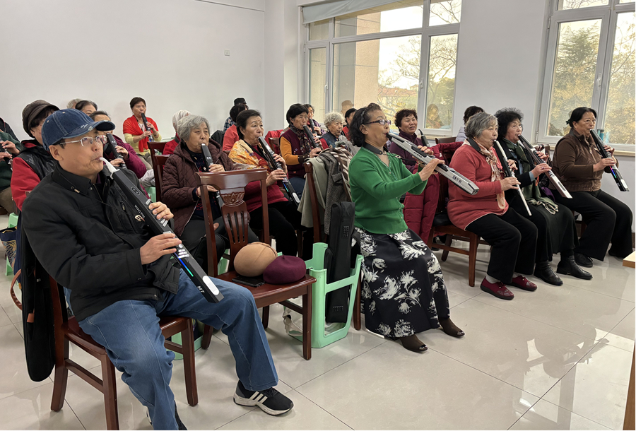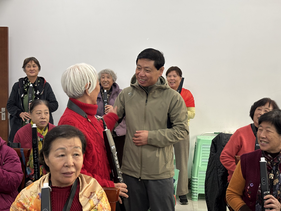连任五届市人大代表,冯鲁威二十余年如一日履职尽责,把群众的急难愁盼放在心上、抓在手上,从托幼到养老,用全龄段的教育与服务,书写着有温度、有厚度的履职答卷。 家门口的“银发乐园” 让居民老有所学、老有所乐 走进鲸园社区教育学院,舞蹈室内,学员们随着音乐舒展身姿,将太极的刚柔与现代舞的活力融为一体;声乐教室里,学员们紧盯着老师的拍子,手中的电吹管缓缓发出清脆的音符;朗诵班中,学员们用铿锵有力的语调演绎经典诗文,展现“银发族”的精神风采。