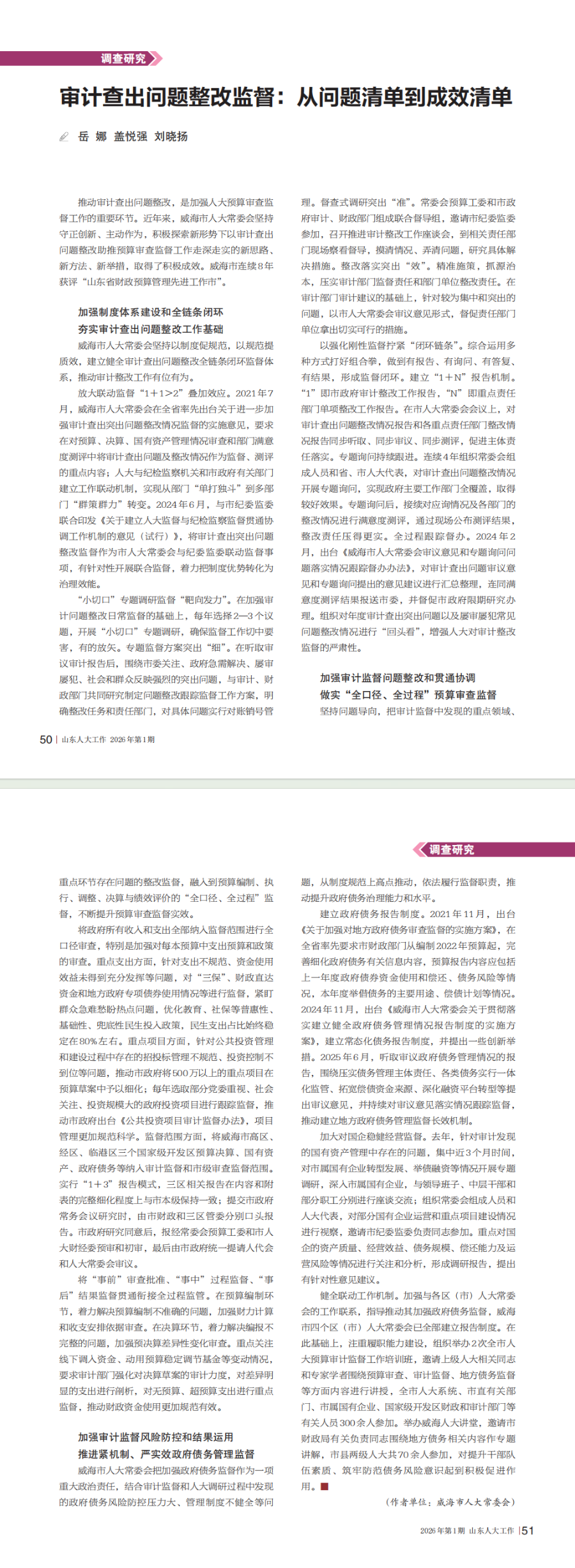| 《山东人大工作》杂志刊发威海做法丨审计查出问题整改监督:从问题清单到成效清单 | ||||